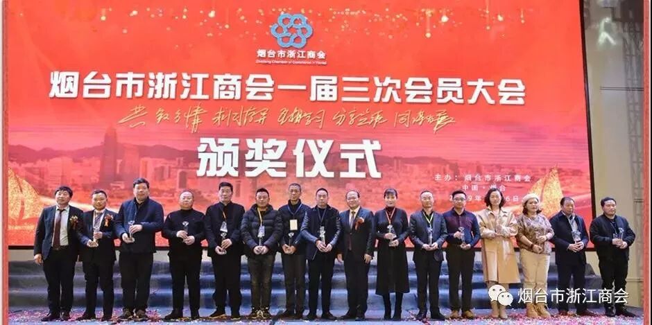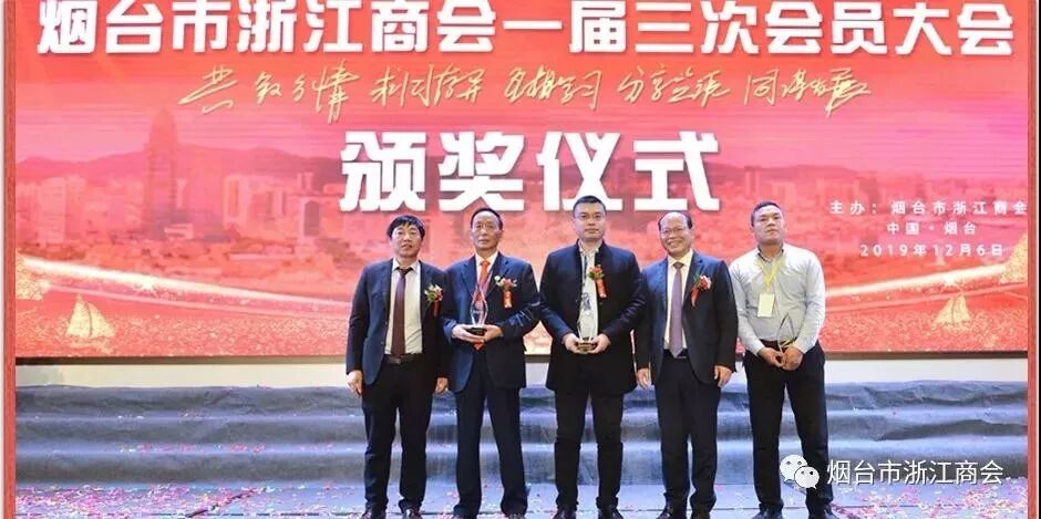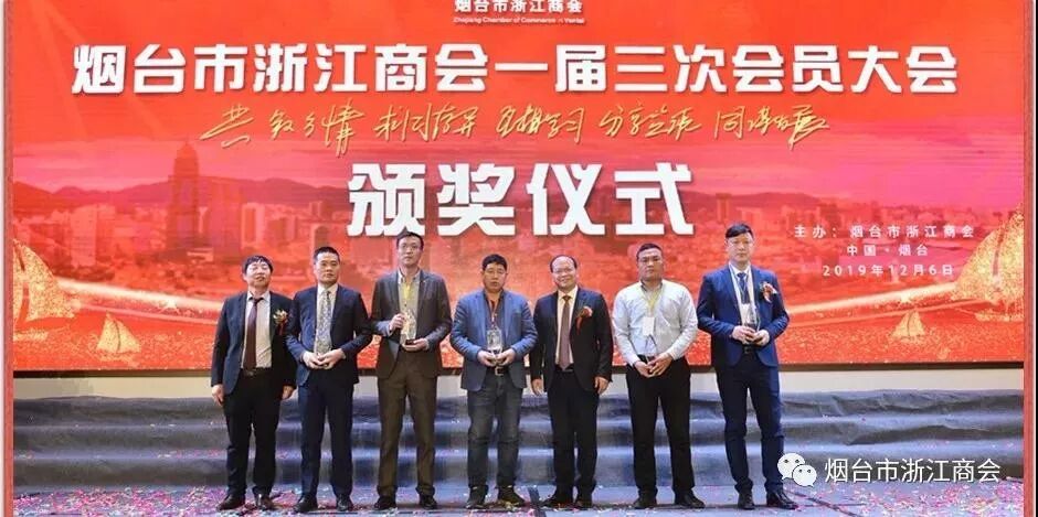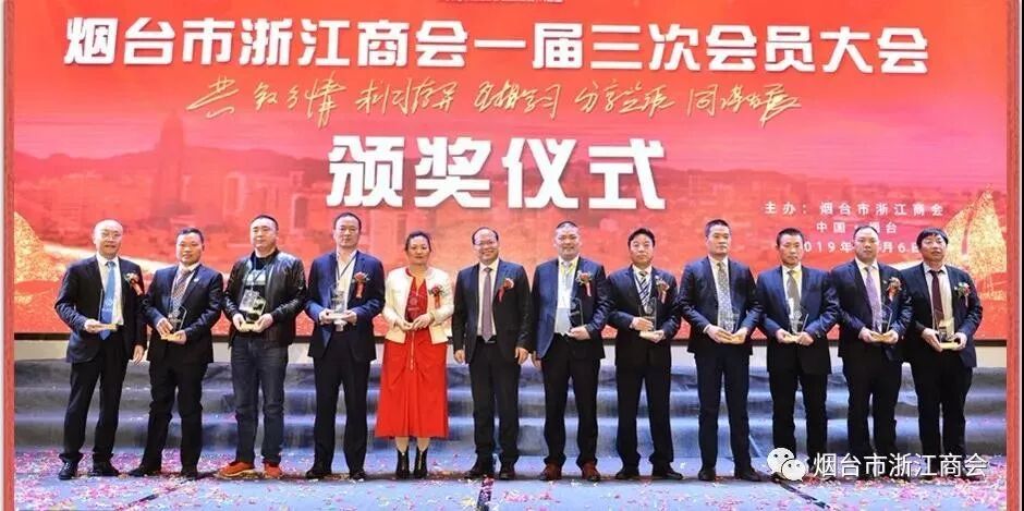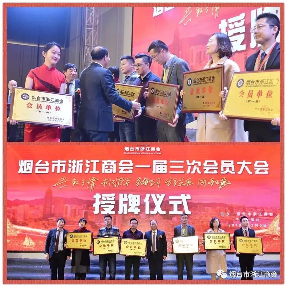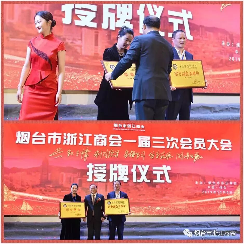 烟台市浙江商会张勤敏会长与黄道红书记为新会员授牌