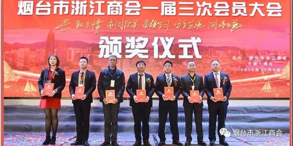 烟台市浙江商会张勤敏会长为新常务副会长、新理事授牌