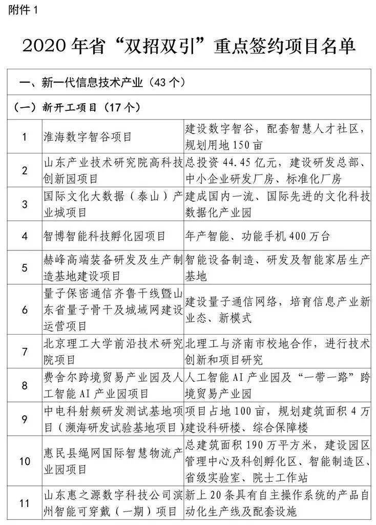 关于公布2020年省“双招双引”重点签约项目名单的通知