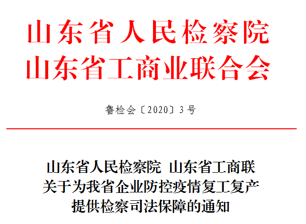 做好行政检察和公益诉讼检察工作。通知要求,按照省委、省政府关于应对疫情支持企业复工复产的部署安排,对政策落实不到位、落实偏差以及过度执法、简单执法、粗暴执法等情形,检察机关充分发挥监督职能予以纠正,工商联做好企业问题的收集反馈。检察机关依法办理因疫情引发的行政征用等涉企行政监督案件,联合有关部门做好相关行政纠纷的调处工作,推动行政争议实质性化解。对疫情防控相关的公益诉讼案件,特别是涉及口罩、防护服等重要医疗防护物资产品生产经营者的,检察机关准确把握法律监督和支持复工复产并重的原则,依法妥善处理。