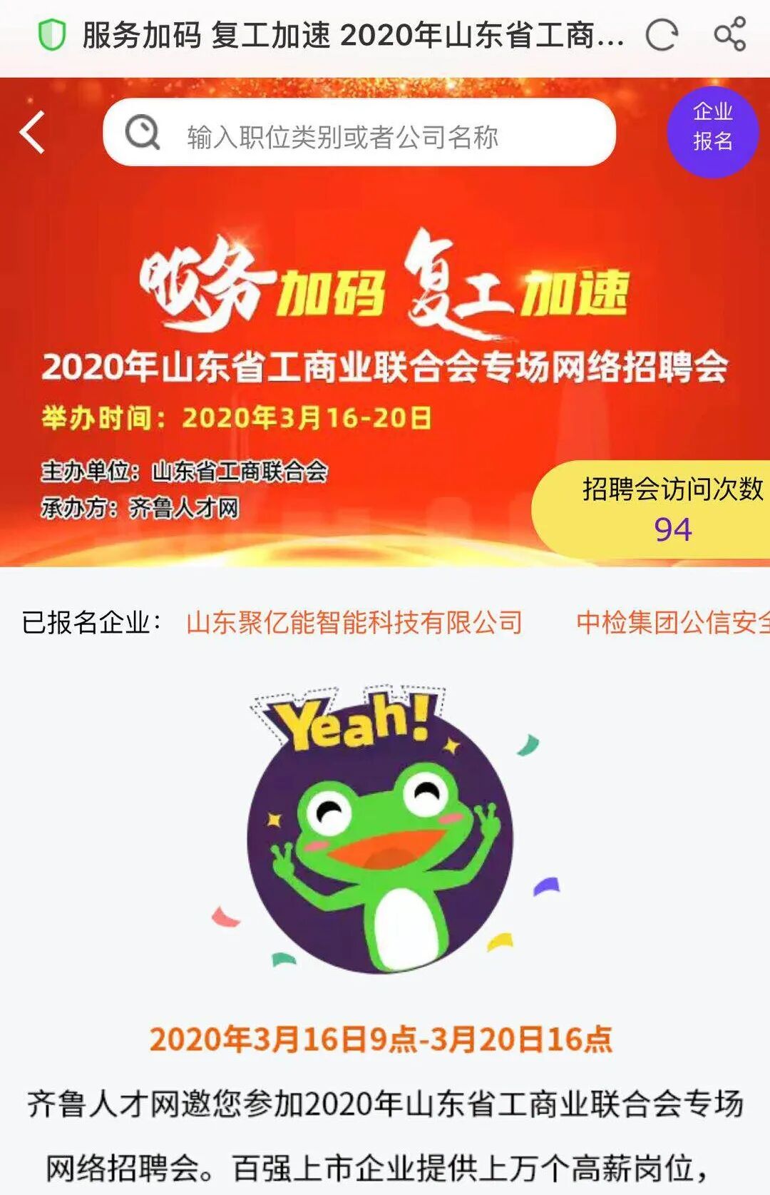 2020年山东省工商业联合会专场网络招聘会