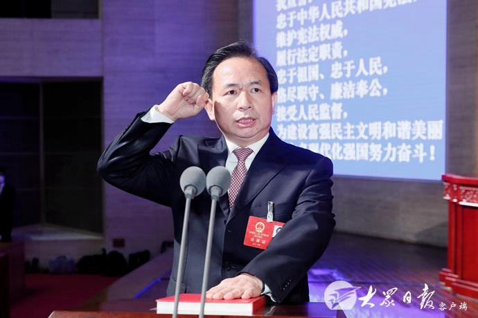 根据全国人大常委会关于实行宪法宣誓制度的决定和山东省实施宪法宣誓制度办法,李干杰进行了宪法宣誓。