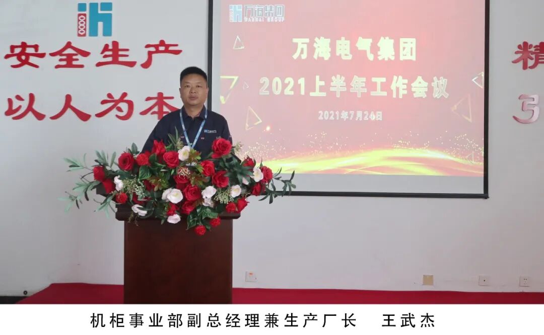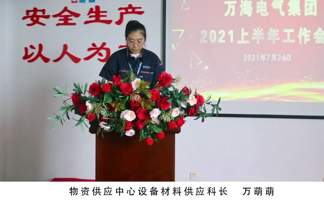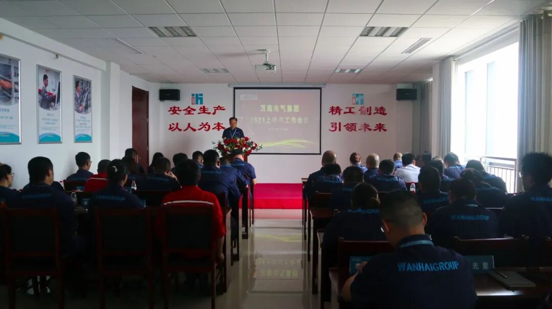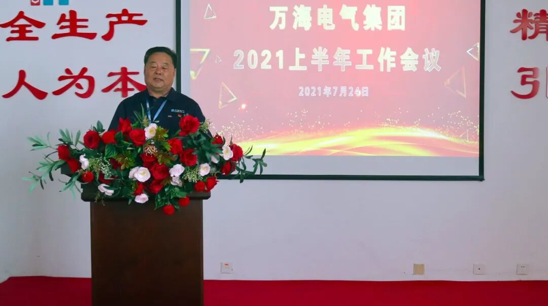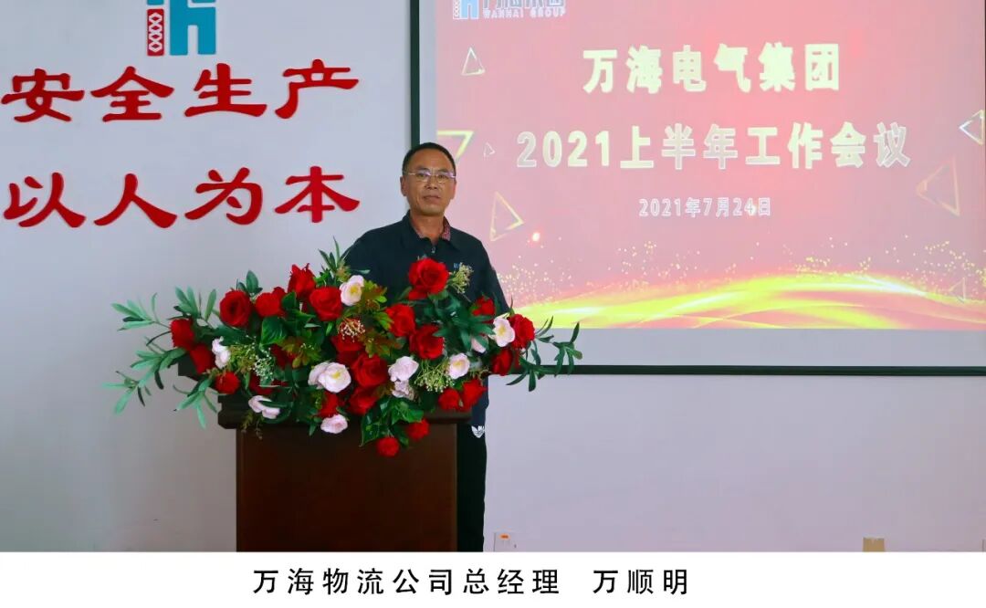2021年7月24日,万海集团召开2021上半年工作会议,集团和各事业部、各公司高、中层负责同志、部分销售经理、部分班组长和业务骨干80多人参加了会议,山东省浙江商会常务副会长、万海集团董事长、总经理万顺青讲话,万海集团支部书记劳玉珍主持会议。
