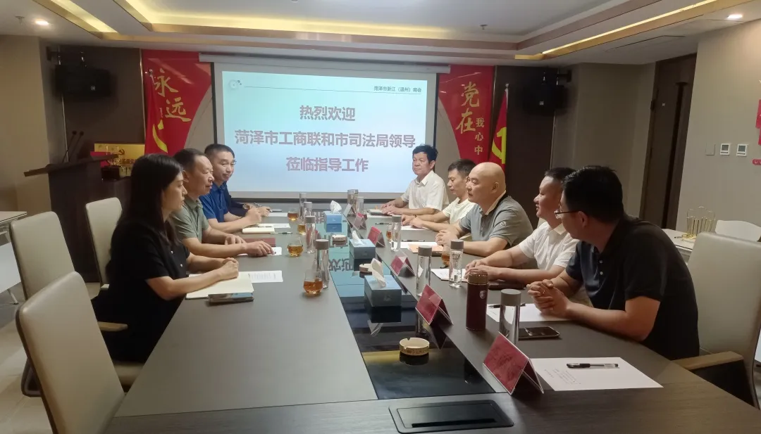 作为菏泽市行政复议联络点,菏泽市浙江(温州)商会始终致力于搭建政企沟通桥梁,助力企业化解行政争议。9 月 5 日上午,菏泽市工商联党组成员、副主席毛红军,市司法局党组成员、二级调研员刘香义带领市司法局行政复议科一行到访商会,开展 “行政复议联系点” 走访座谈活动,首站到访菏泽市浙江(温州)商会。山东省浙江商会常务副会长、菏泽市浙江(温州)商会会长蔡光义,菏泽市浙江(温州)商会执行会长王建华,副会长朱青,理事单位代表吴正友、董连忠,副秘书长田玉卿参加座谈,共话法治护航企业高质量发展之道。